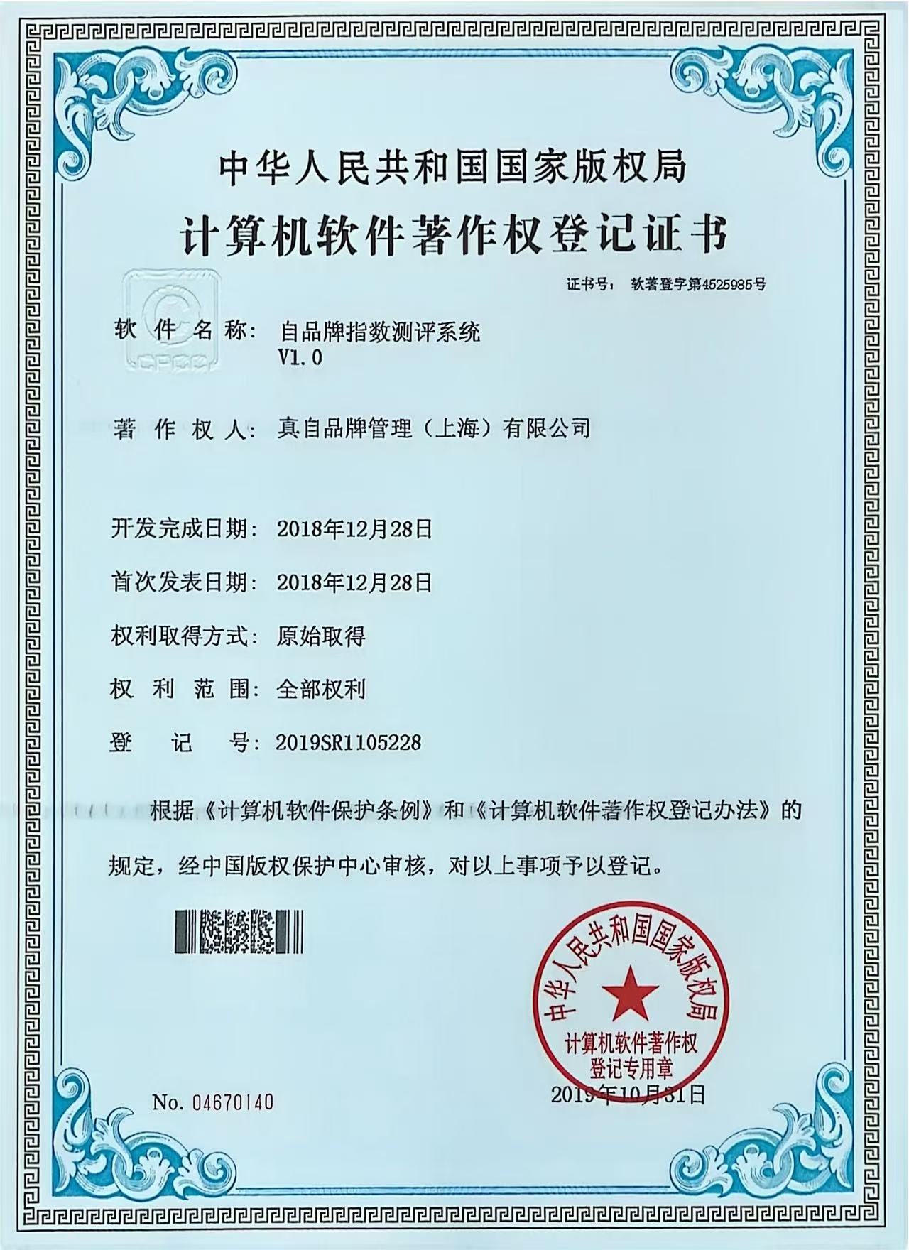 孔斌:自品牌指数测评系统V1.0·计算机软件著作权登记证书