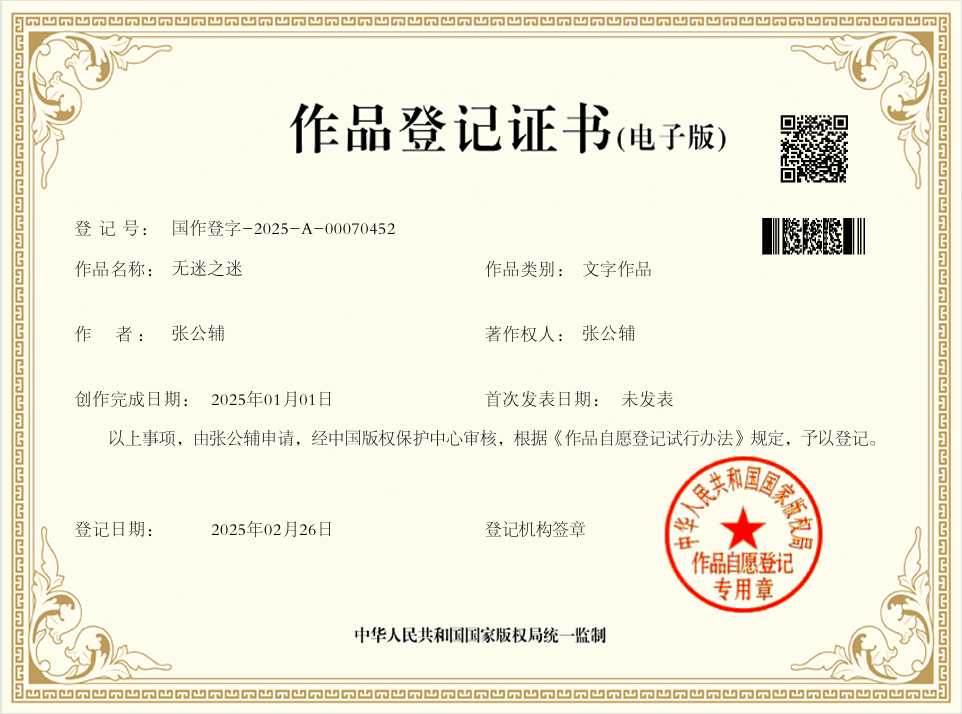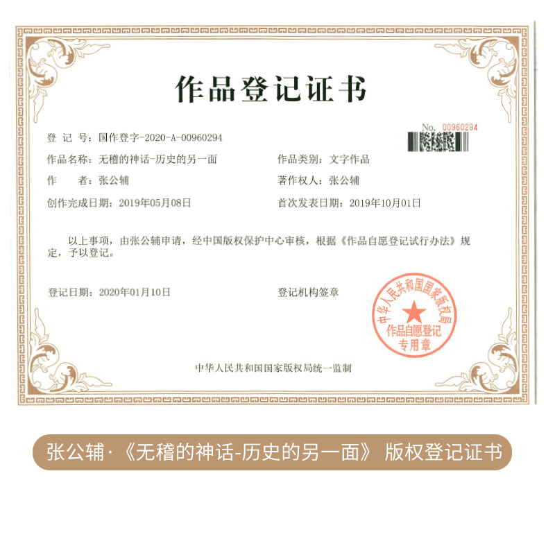 米高猫:《无稽的神话-历史的另一面》作品登记证书