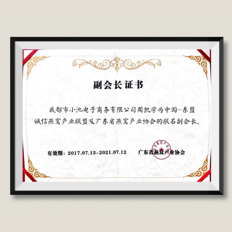 周凯学:被评为——东盟诚信燕窝产业联盟及广东省燕窝产业协会的联名副会长