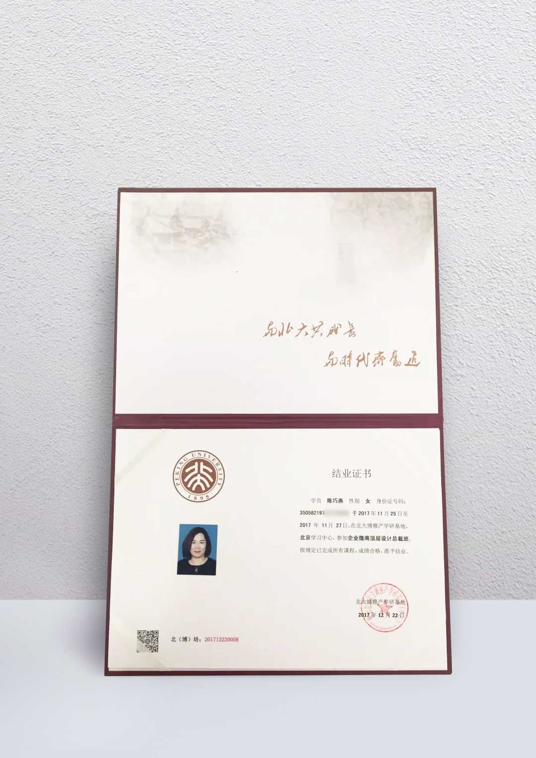 陈巧燕:“结业证书”