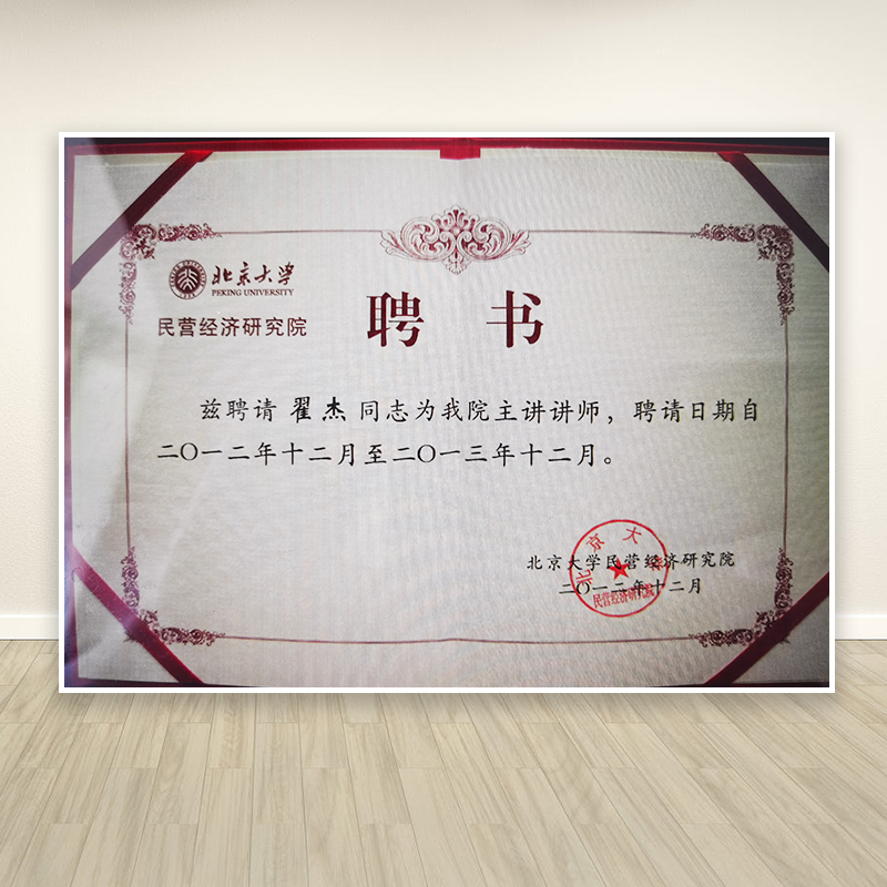 翟杰:北京大学民营经济研究院主讲讲师聘书