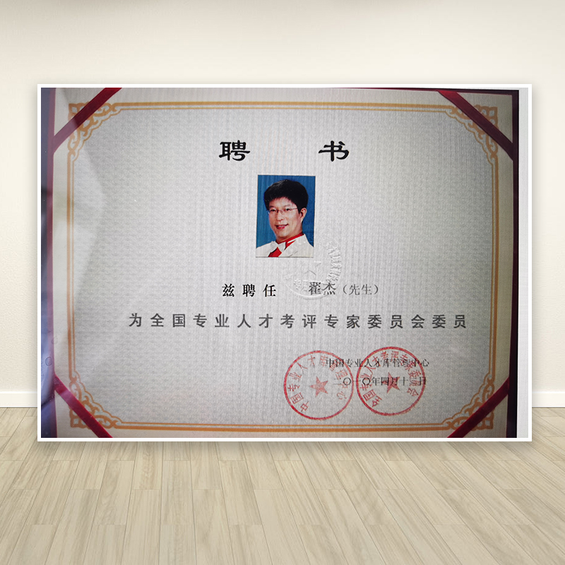 翟杰:国际商务职业资格认证专家委员会及考评委员会委员聘书
