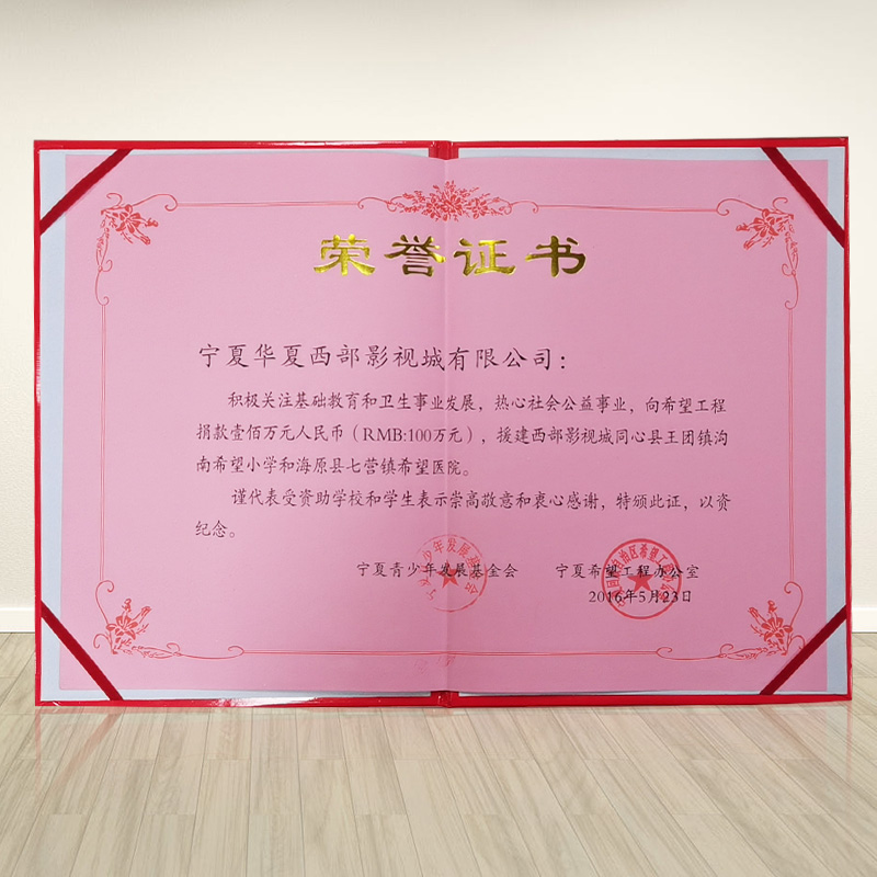 米高猫: 宁夏希望工程荣誉证书-捐款壹佰万元人民币