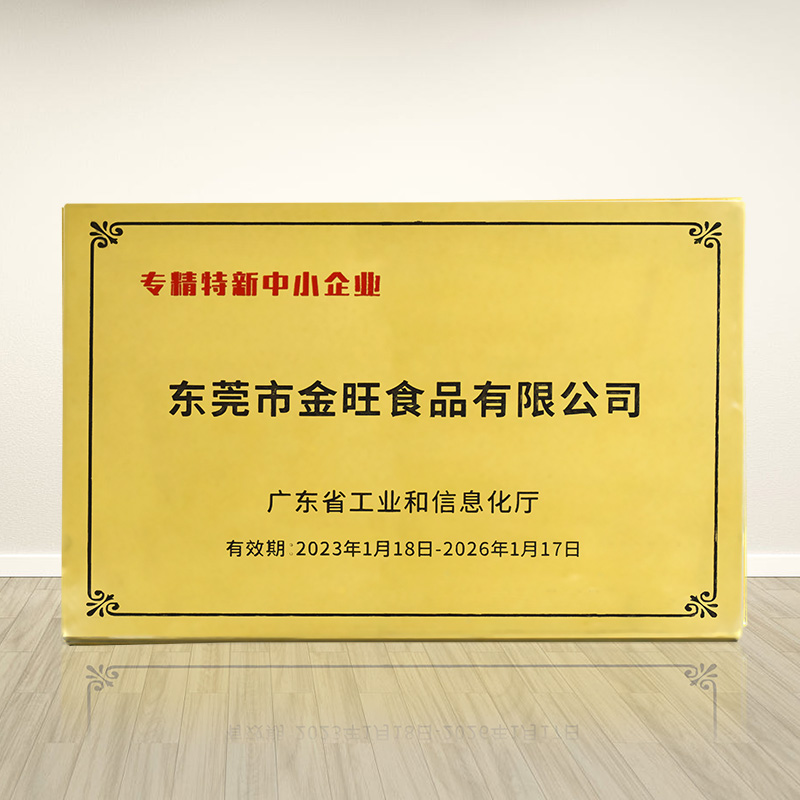 陈瑞武:东莞市金旺食品有限公司荣获“专精特新中小企业”证书