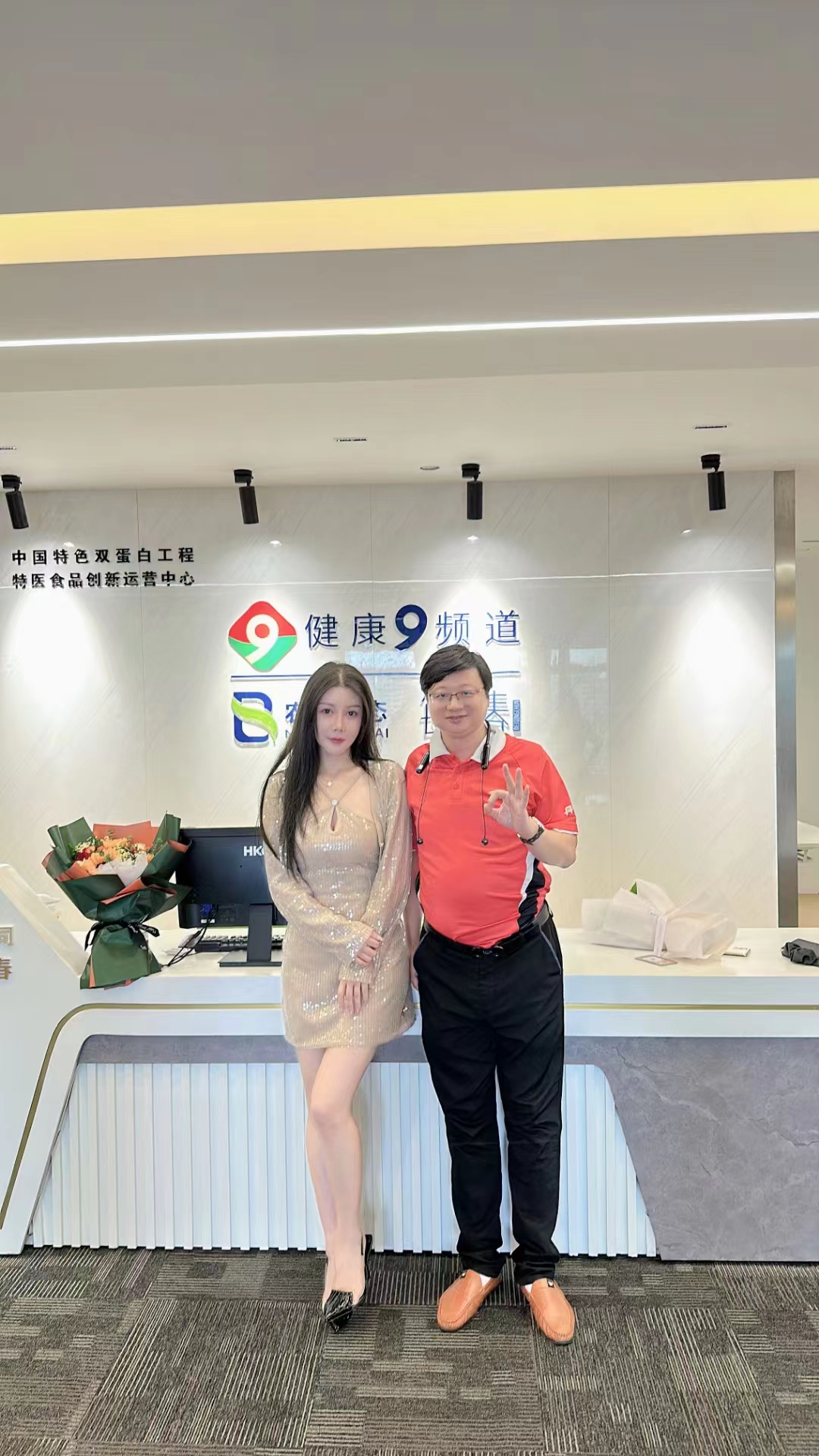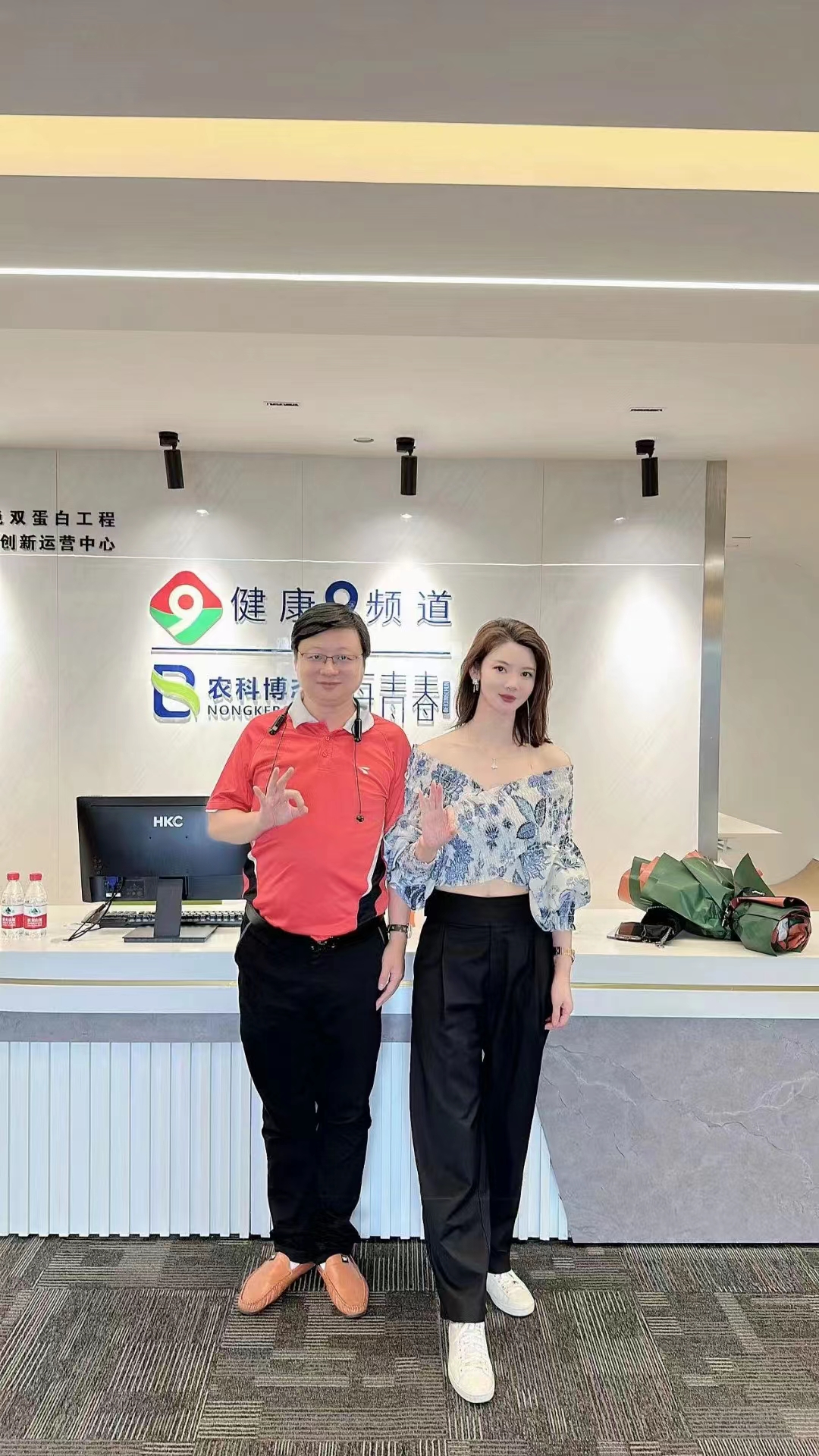 管鹏:管鹏老师在每青春健康第九频道运营中心和美女朋友单独合影留念