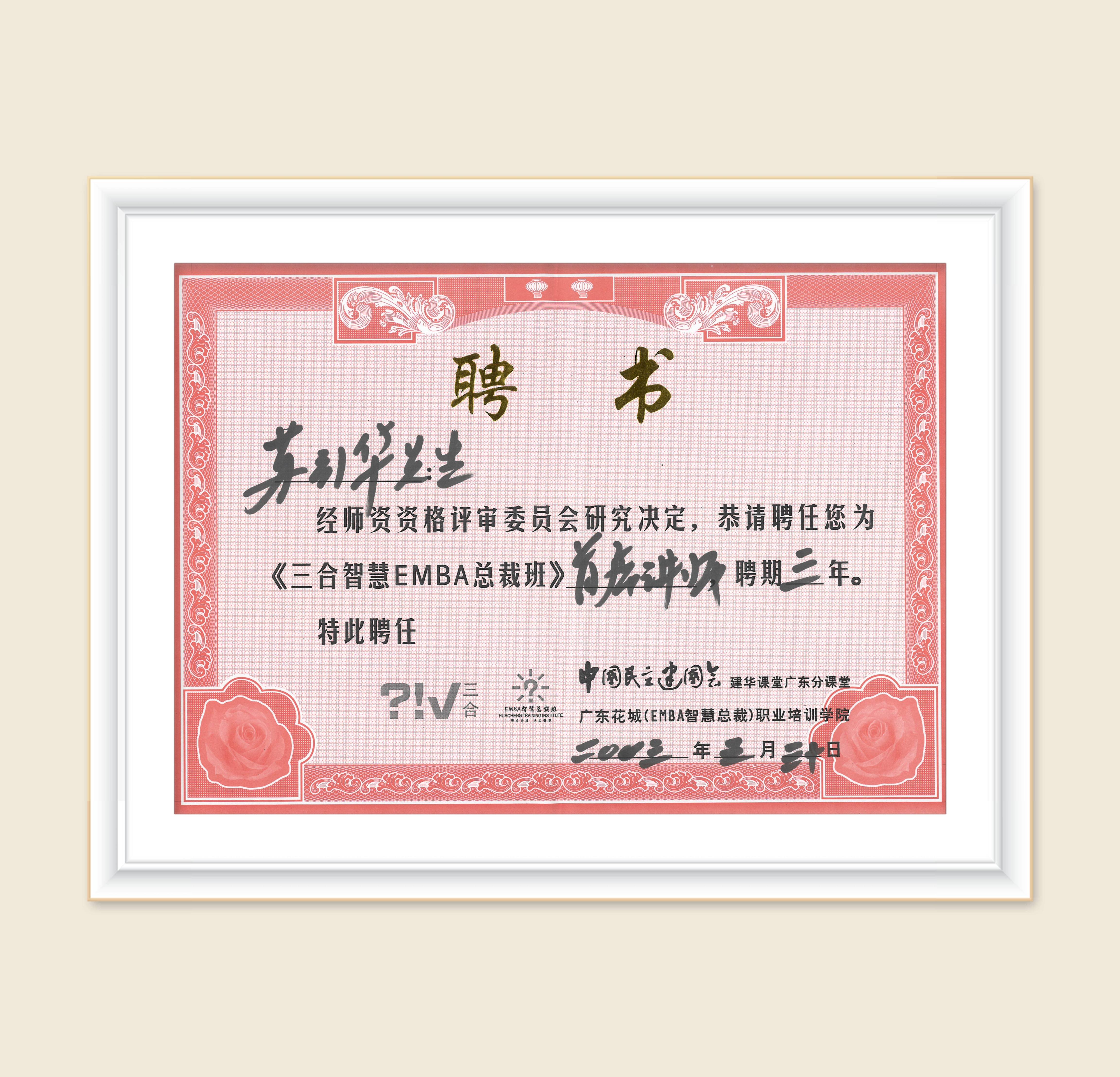 苏引华:受聘为——“《三合智慧EMBA总裁班》首席讲师”