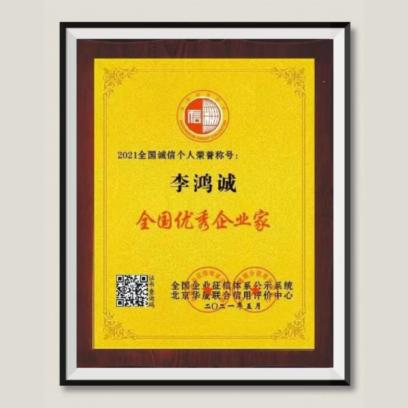 李鸿诚:荣获2021全国诚信个人荣誉称号——“全国优秀企业家”