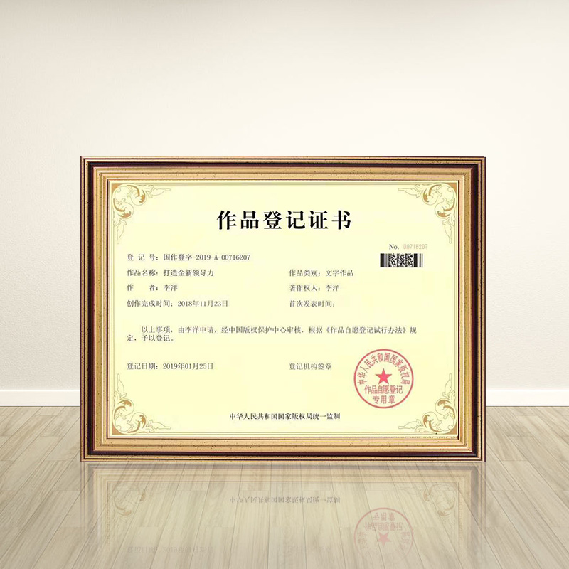 李洋:文字作品——《打造全新领导力》作品登记证书