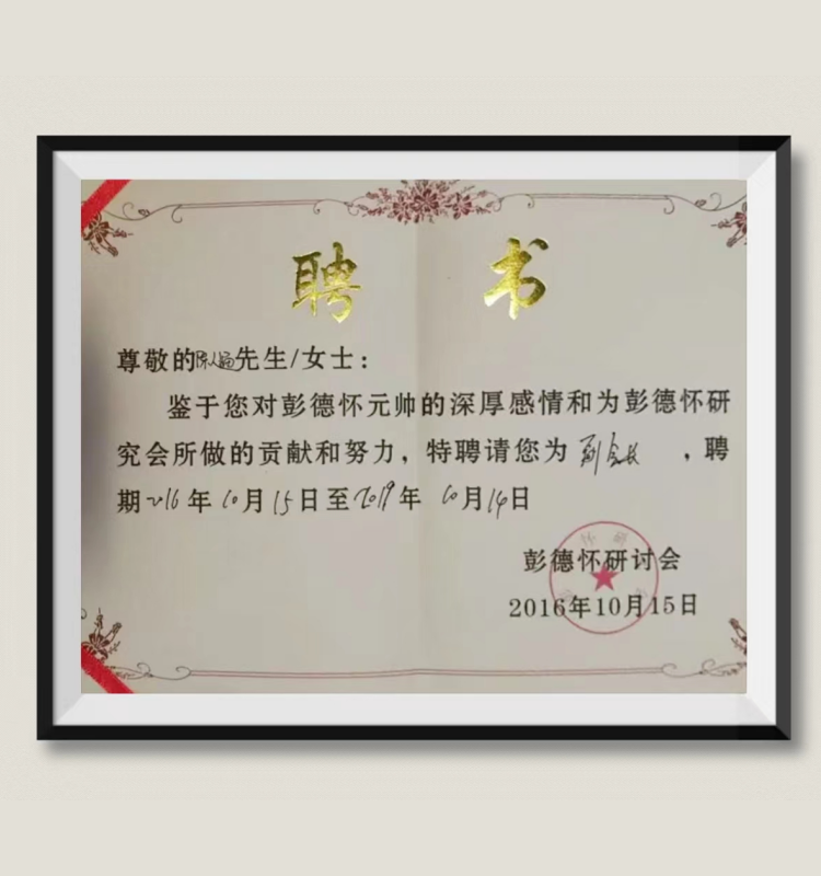 陈人通:受聘为——“彭德怀研究会所副会长”