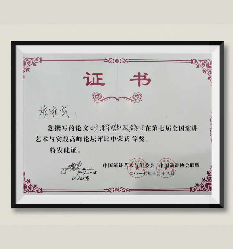 张湘武: 荣获第七届全国演讲艺术与实践高峰论坛一等奖