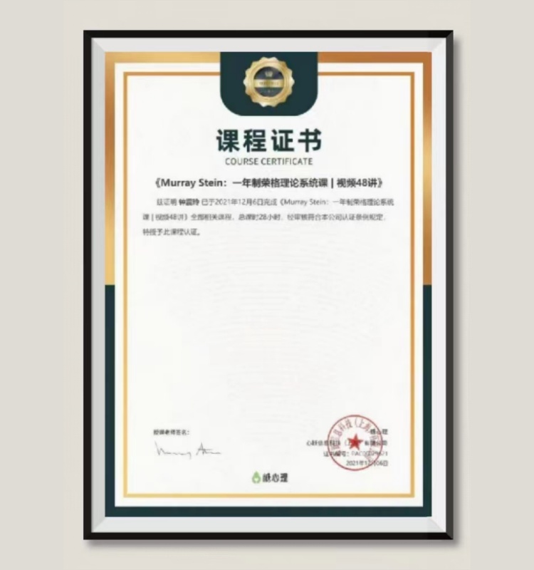 钟震玲:荣获荣格心理学系统课程认证