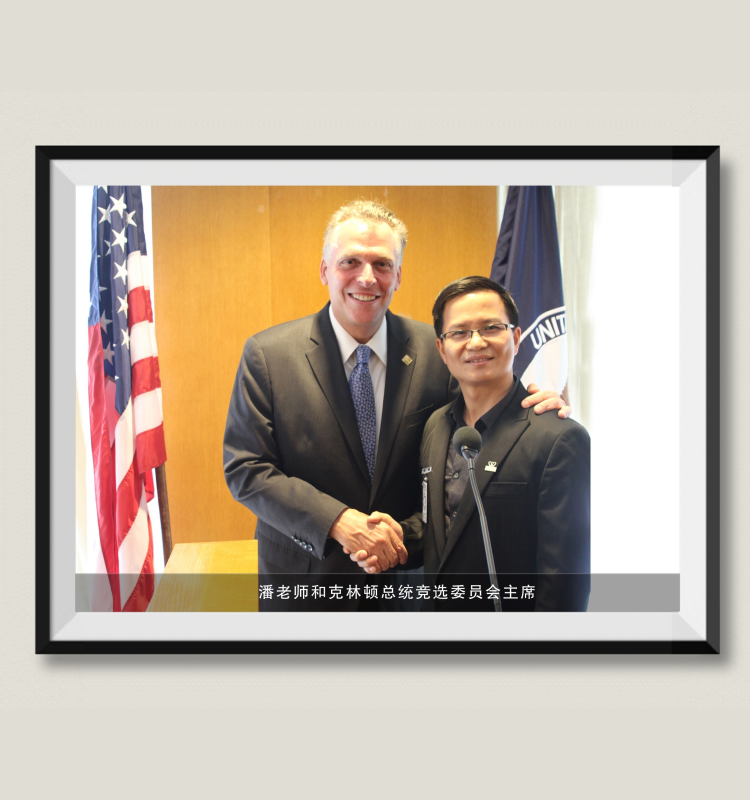 潘伟成:潘伟成老师(右)与克林顿总统竞选委员会主席合影