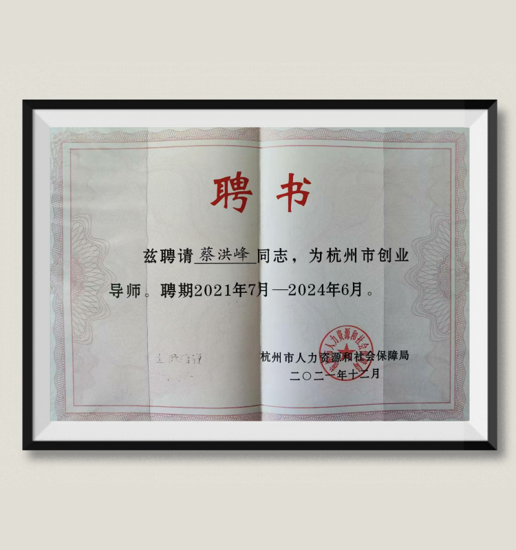 蔡洪峰:受聘为“杭州市创业导师”