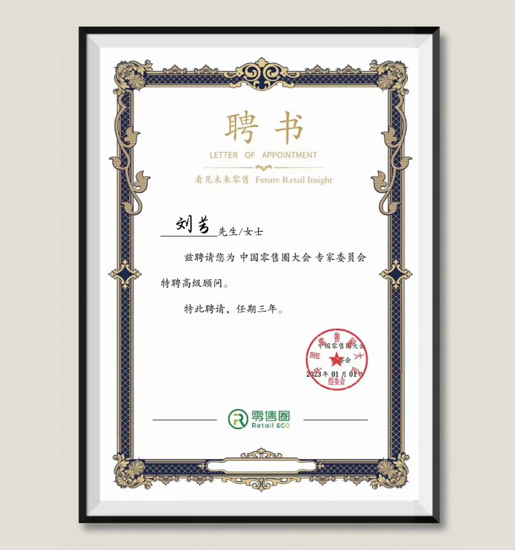 刘芳:受聘为“中国新零售大会,专家委员会特聘高级顾问”