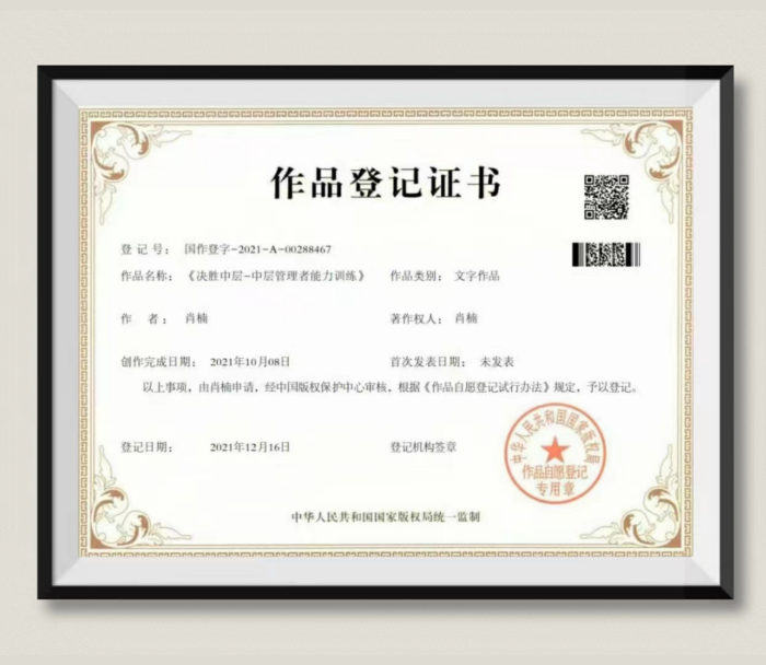 肖楠:《决胜中层-中层管理者能力训练》作品登记证书