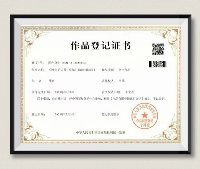 肖楠:《横向无边界-跨部门沟通与协同》作品登记证书