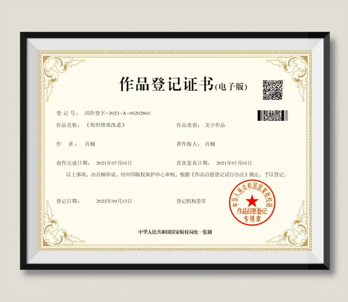 肖楠:《组织绩效改进》作品登记证书