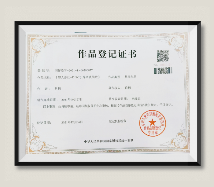 肖楠:《知人善任-DISC引爆团队绩效》作品登记证书