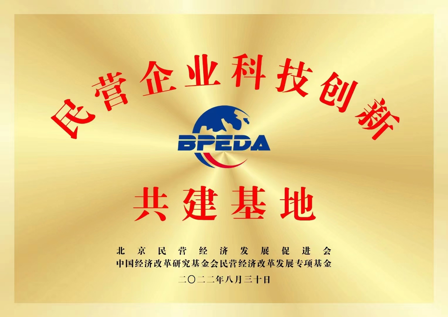 陈人通:民营企业科技创新共建基地证书