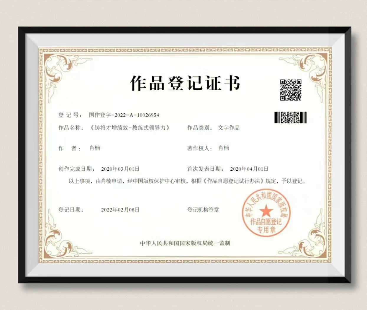 肖楠:《铸将才增绩效-教练式领导力》作品登记证书
