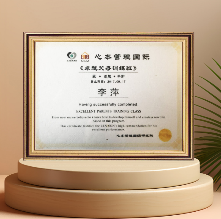 李萍 :心本管理国际 《卓越父母训练班》结业证书
