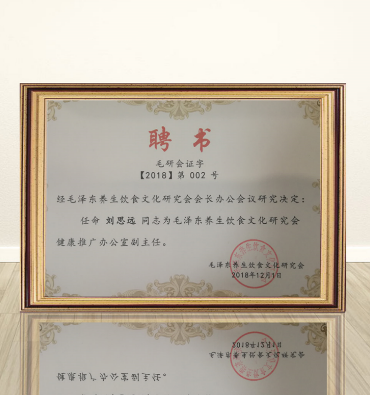 刘思远:刘思远老师受聘为毛泽东养生饮食文化研究会健康推广办公室副主任