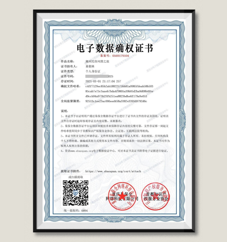 童朝林:潮州民俗风情之旅确权证书