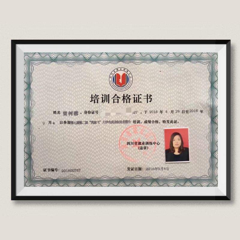 曾树蓉:荣获“我能飞”大学生成功创业者提升培训合格证书