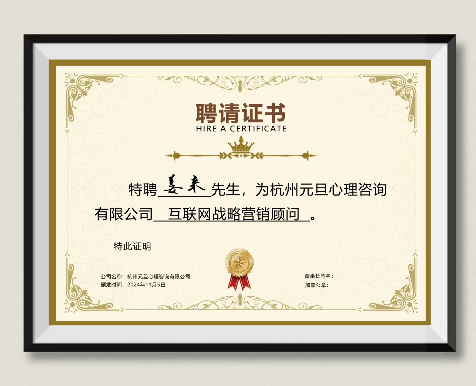 姜来:受聘为杭州元旦心理咨询有限公司“互联网战略营销顾问”