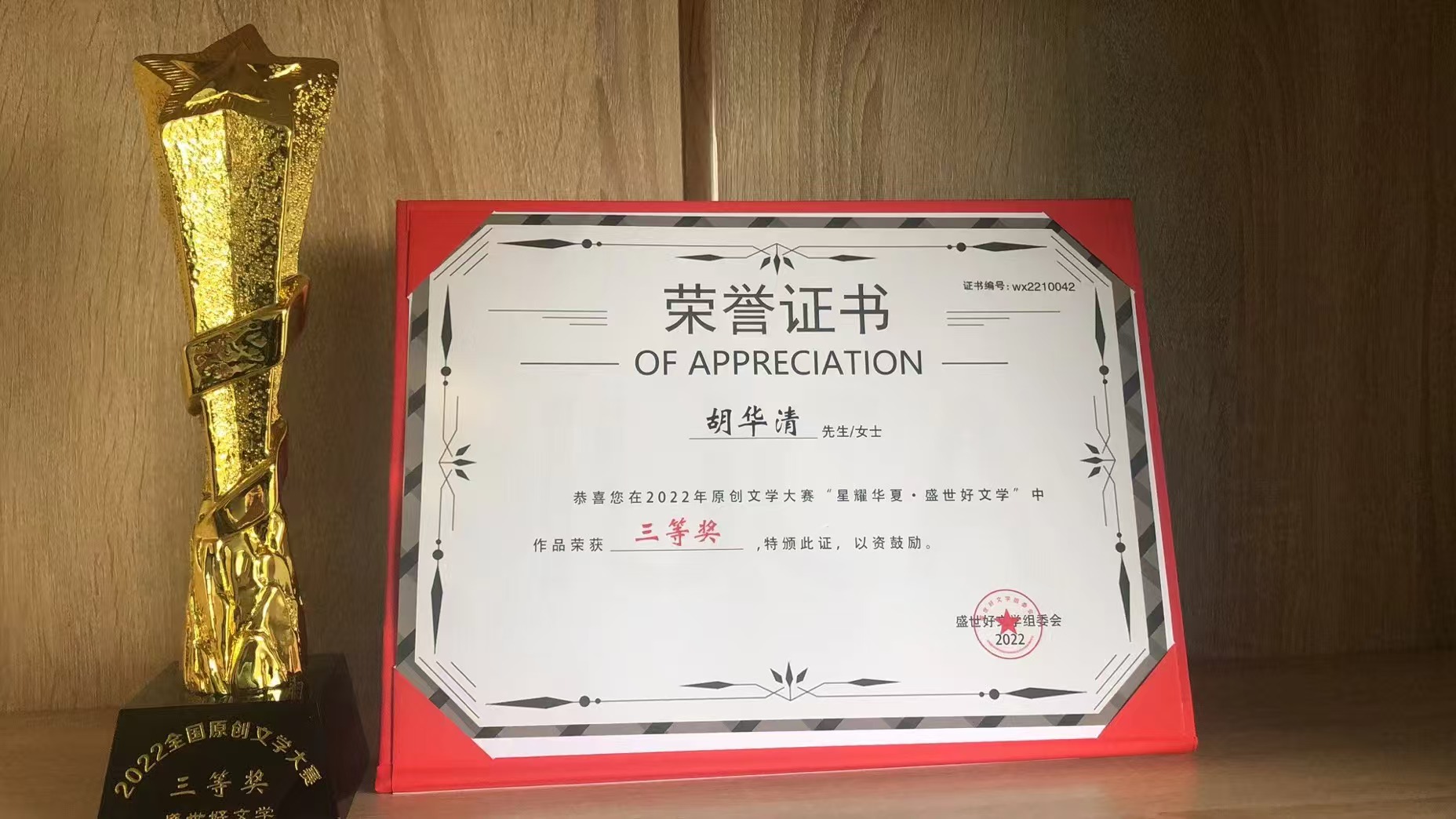 胡华清:2022年原创文学大赛“星耀华夏·盛世好文学”中获得三等奖