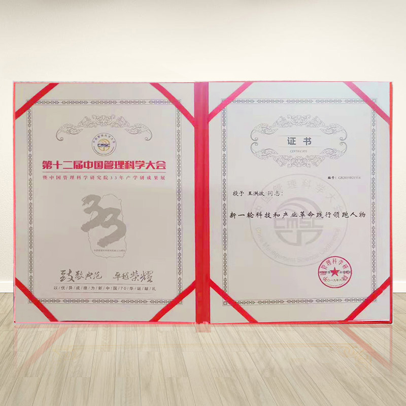 王洪波:新一轮科技和产业革命践行领跑人物证书内页