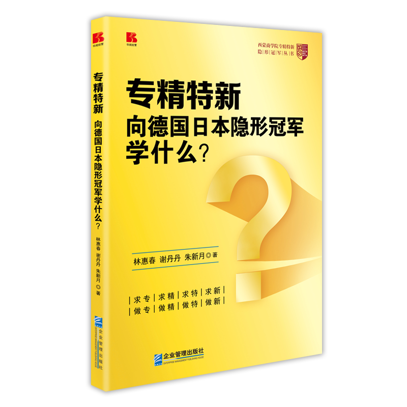 《专精特新——向德国日本隐形冠军学什么?》内容简介西蒙商学院常设院长林惠春认为,专精特新是隐形冠军的“初级阶段”,隐形冠军是专精特新的榜样、标杆、目标和方向,而隐形冠军理论正是专精...