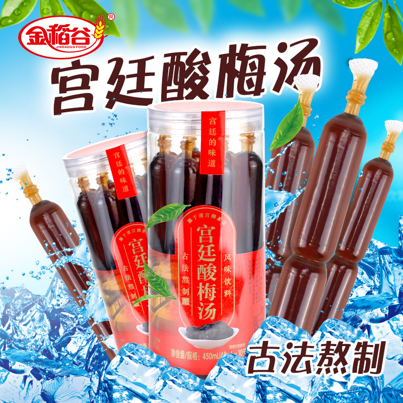 金稻谷古法熬制酸梅汤棒棒冰,用童年的味道承包你的夏天,酸甜劲爽,冰冻更过瘾,宫廷酸梅汤风味饮品,酸甜果味饮料,果味清香,色泽鲜艳,常温喝酸甜可口。