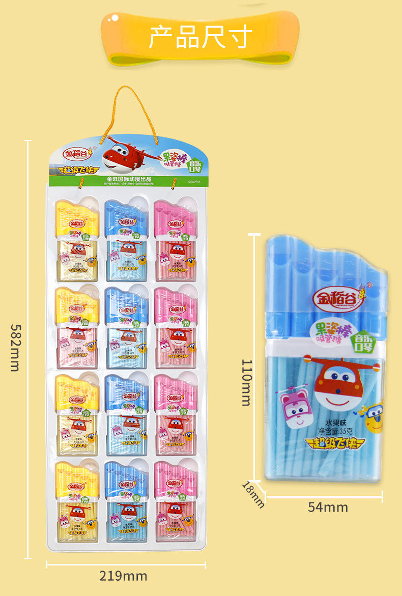 超级飞侠官方正版授权,多口味吸管糖——果姿棒,音乐口琴造型,香甜可口水果味,外层食品级吸管,给小朋友安全保障,开盖式出口,想吃什么口味就吃什么口味,方便不混乱。