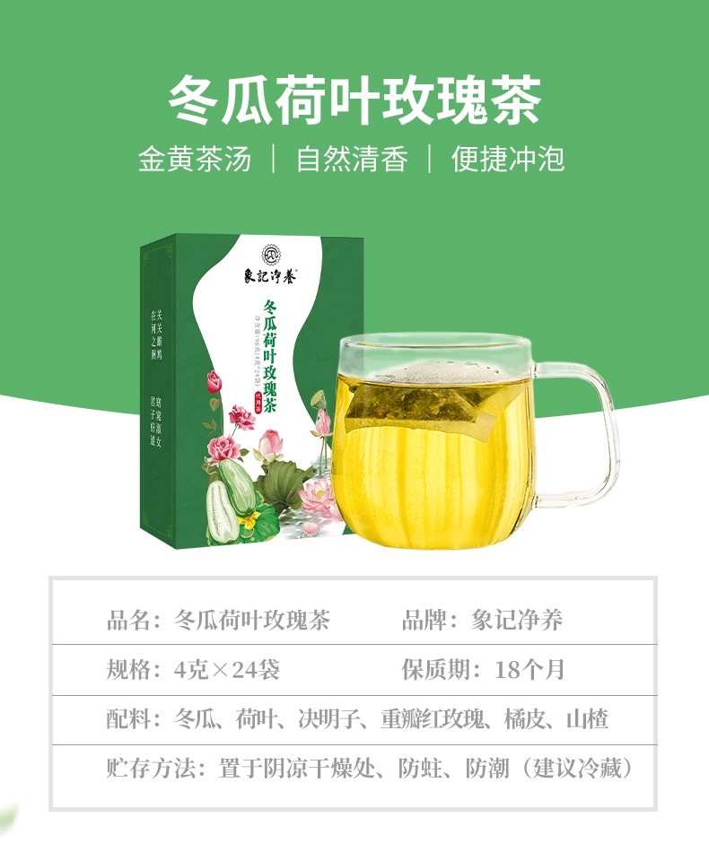向子科:象记净养——冬瓜荷叶玫瑰决明子红玫瑰橘皮山楂男女茶24包独立装