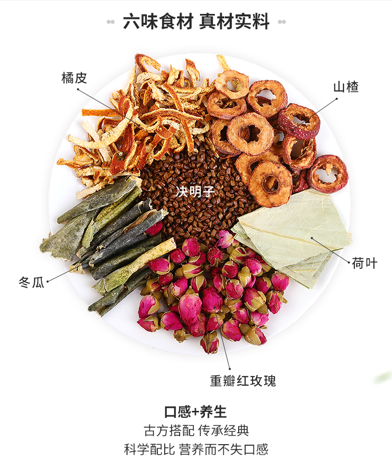 品味生活,从一杯茶开始,精选了冬瓜、荷叶、玫瑰、橘皮等六味天然草本食材,古法搭配,科学配比,经典而不失口感,24包独立装设计,不仅干净卫生,更便于您随时随地享受一杯好茶。