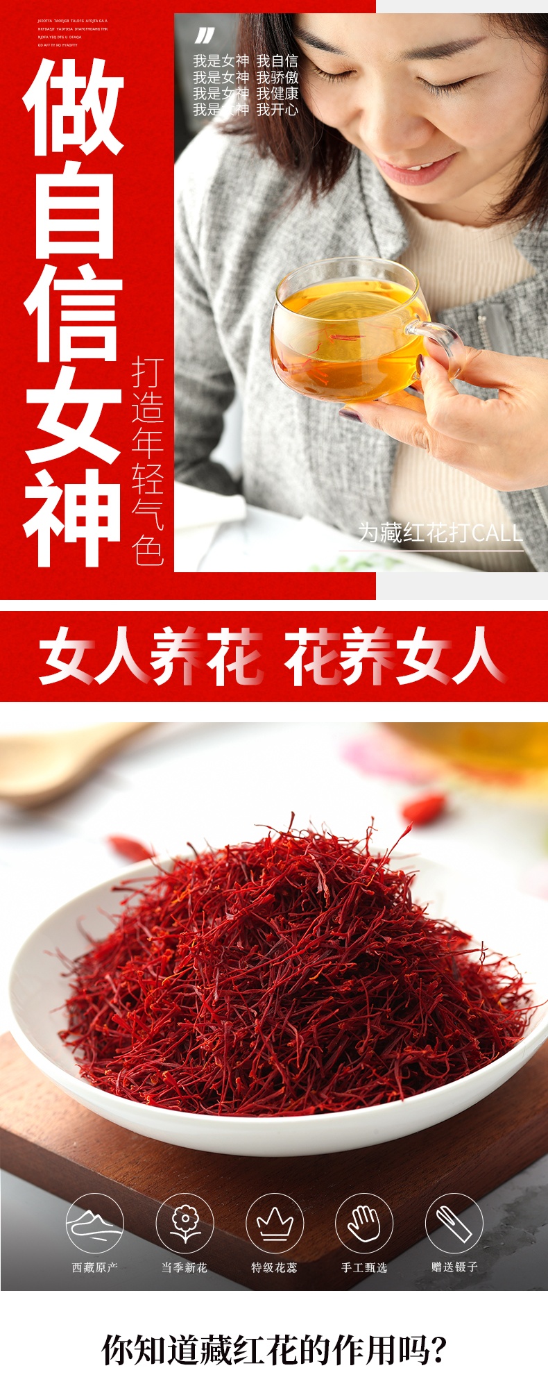 做自信女神,打造年轻气色,藏红花被誉为“能治百病的神草”,象记净养藏红花,源自西藏高原的纯正藏红花,龙头凤尾,滋补养生。只选当季新花,品质浓度高,营养完整纯手工挑选,自然晾晒,货真价实。