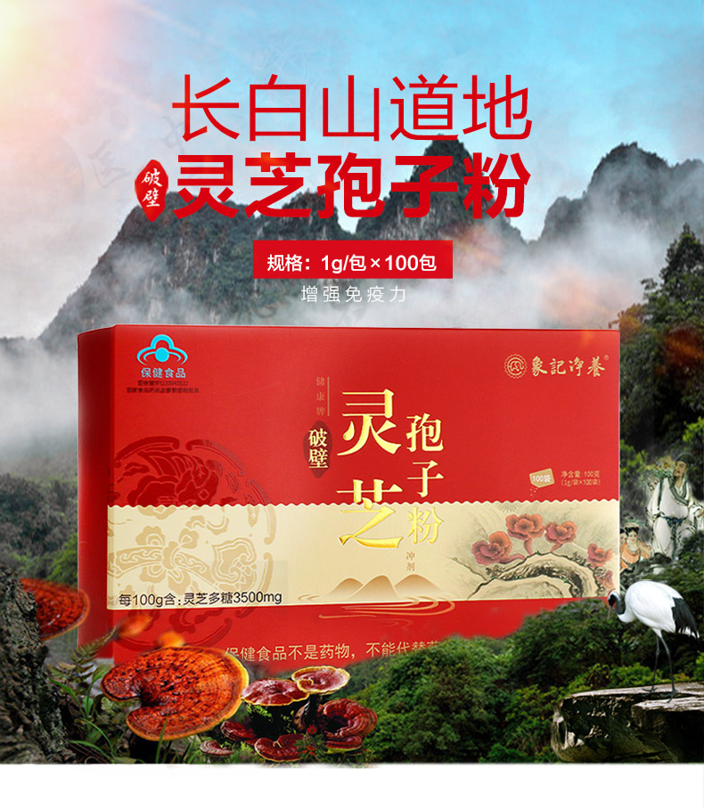 向子科:象记净养——破壁灵芝孢子粉1盒100袋长白山正品增强免疫力官方旗舰店