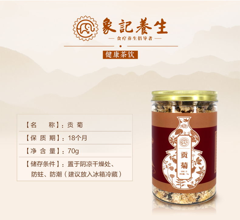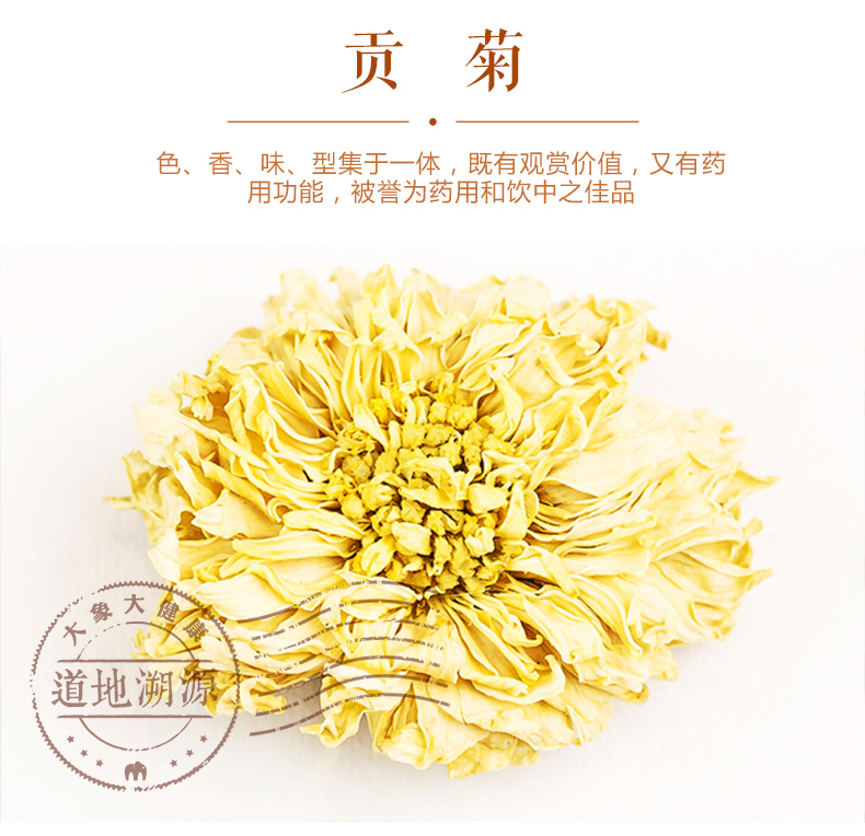 象记净养——黄山贡菊特白菊花茶,健康茶饮,养生臻品,色、香、味、型 集于一体,既有观赏价值,又有药用功能,被誉为药用和饮中之佳品,手工采摘,自然晾晒,好材料有好味道。