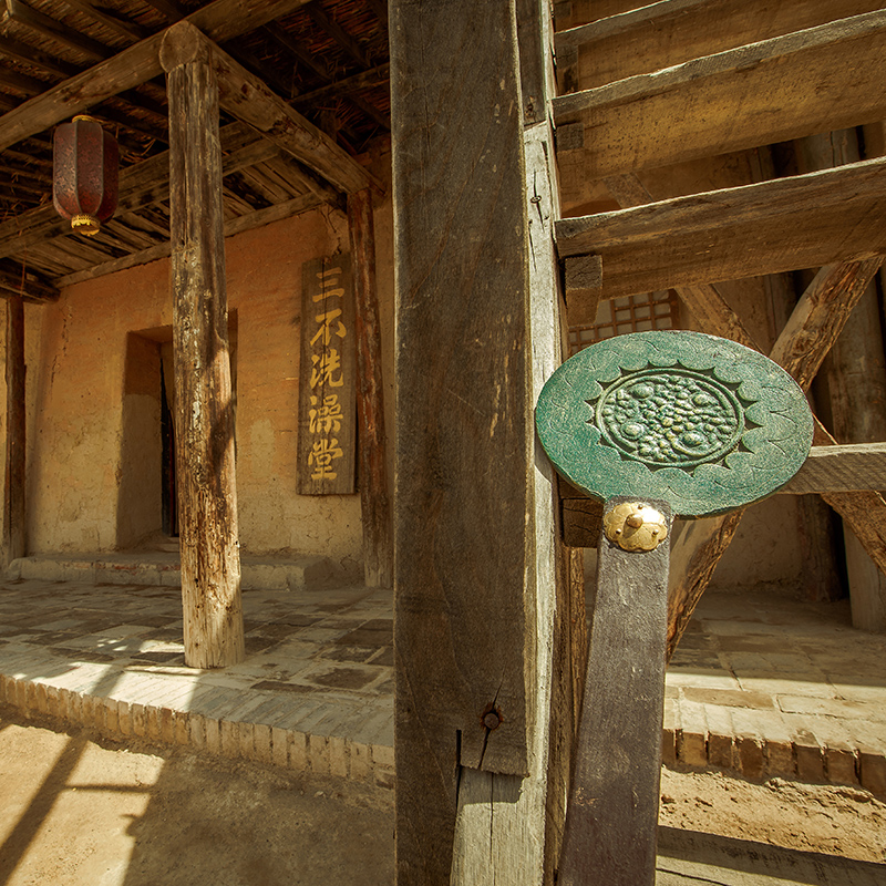 入口是一个拱形门洞,从这个角度来看,能看见远处真正的月亮门,两个拱形门洞照相呼应,有双月映玉之意,两个月就是一个朋字,有朋自远方来,不亦乐乎的意思~也是再次欢迎各位游客朋友来到镇北堡西部影城参观游览。
