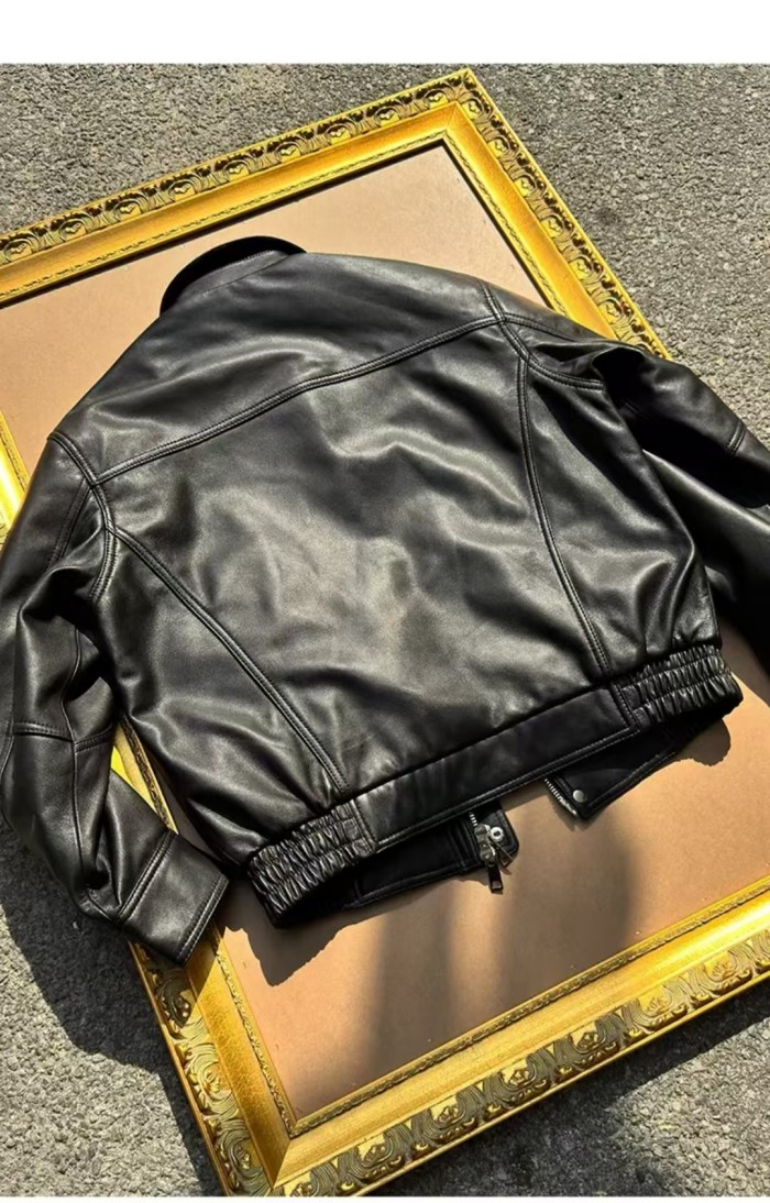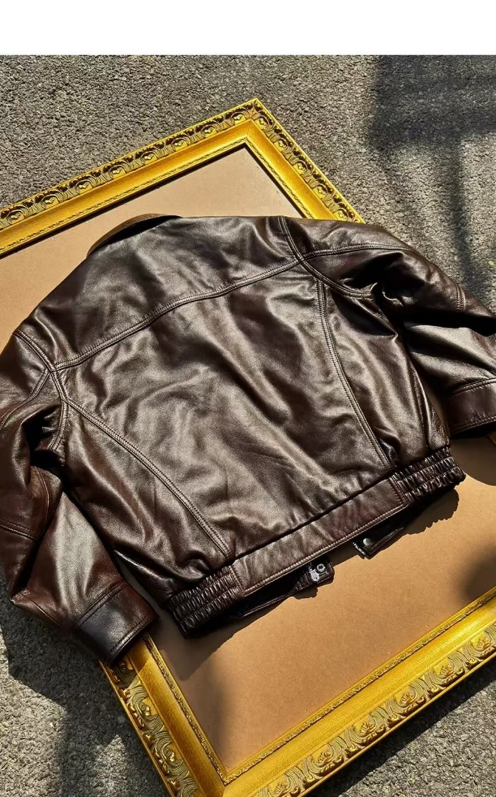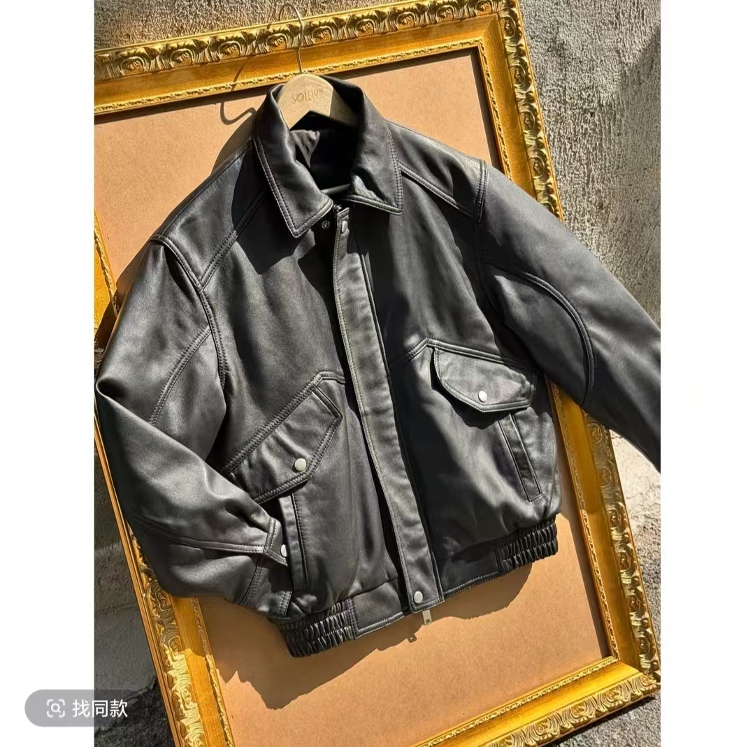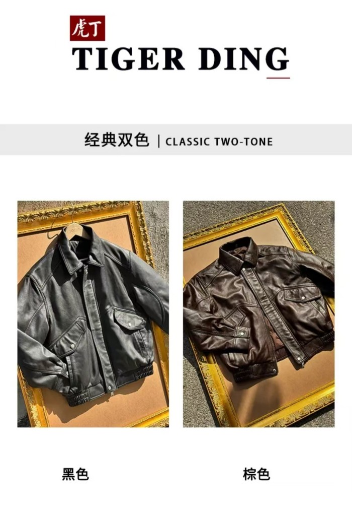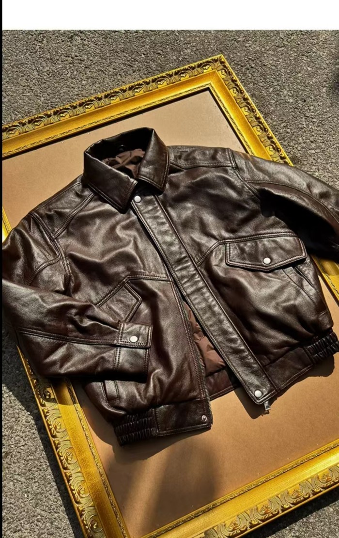 周鹏:张官周:头层山羊皮2402男士翻领休闲时尚潮流羽绒秋冬 皮夹克