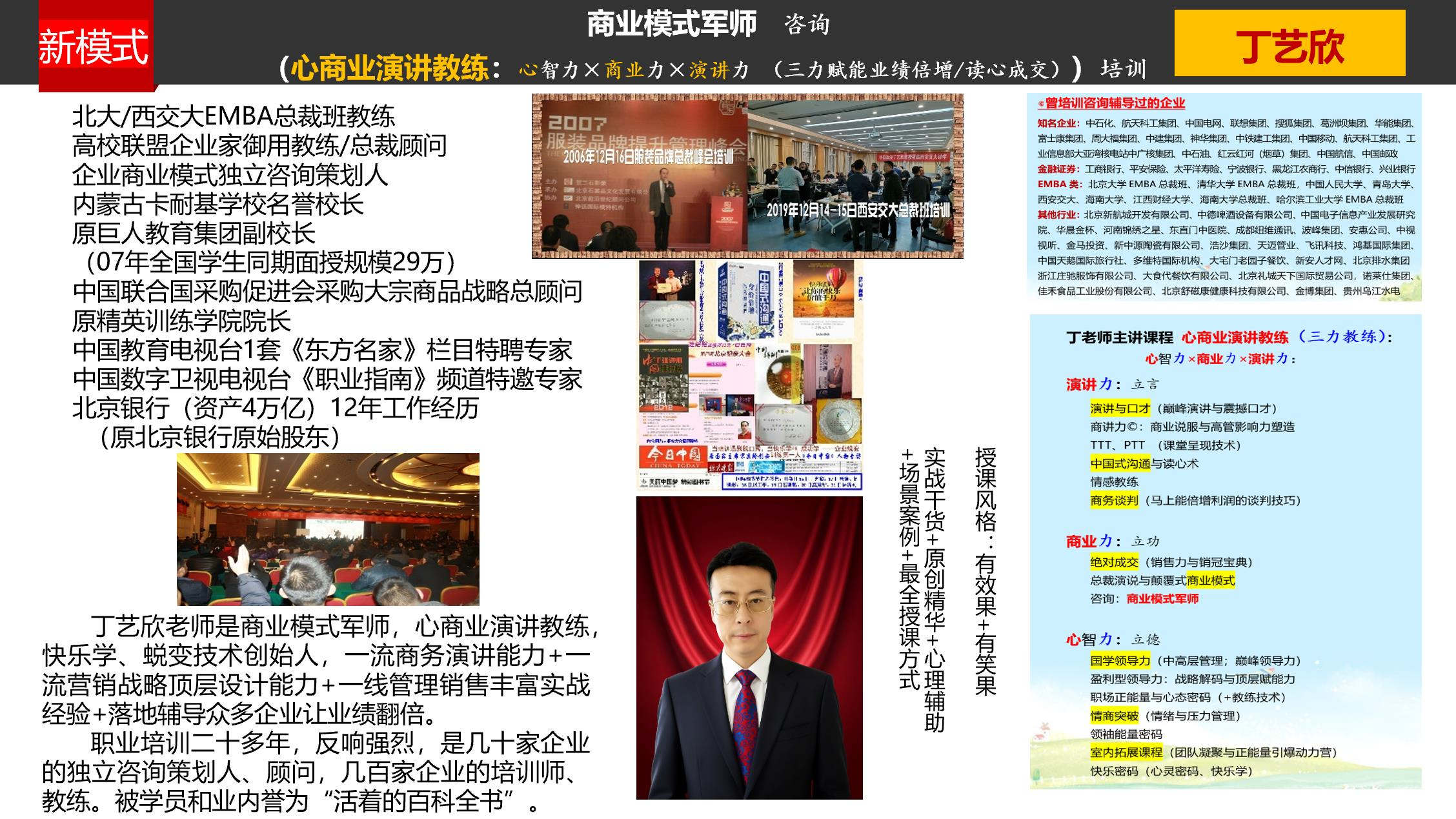 北大西交大EMBA总裁班教练;高校联盟企业家御用教练;总裁顾问企业商业模式独立咨询策划人;内蒙古卡耐基学校名誉校长;原巨人教育集团副校长