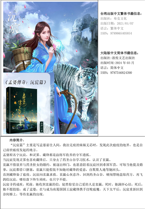李莎奇幻力作《孟婆传奇之沅宸篇》,以东方幽冥世界观书写爱恨与执念,深植传统文化内核,极具影视、动漫改编价值,现诚意寻求全版权合作,诚邀业内同仁共筑东方奇幻新经典。