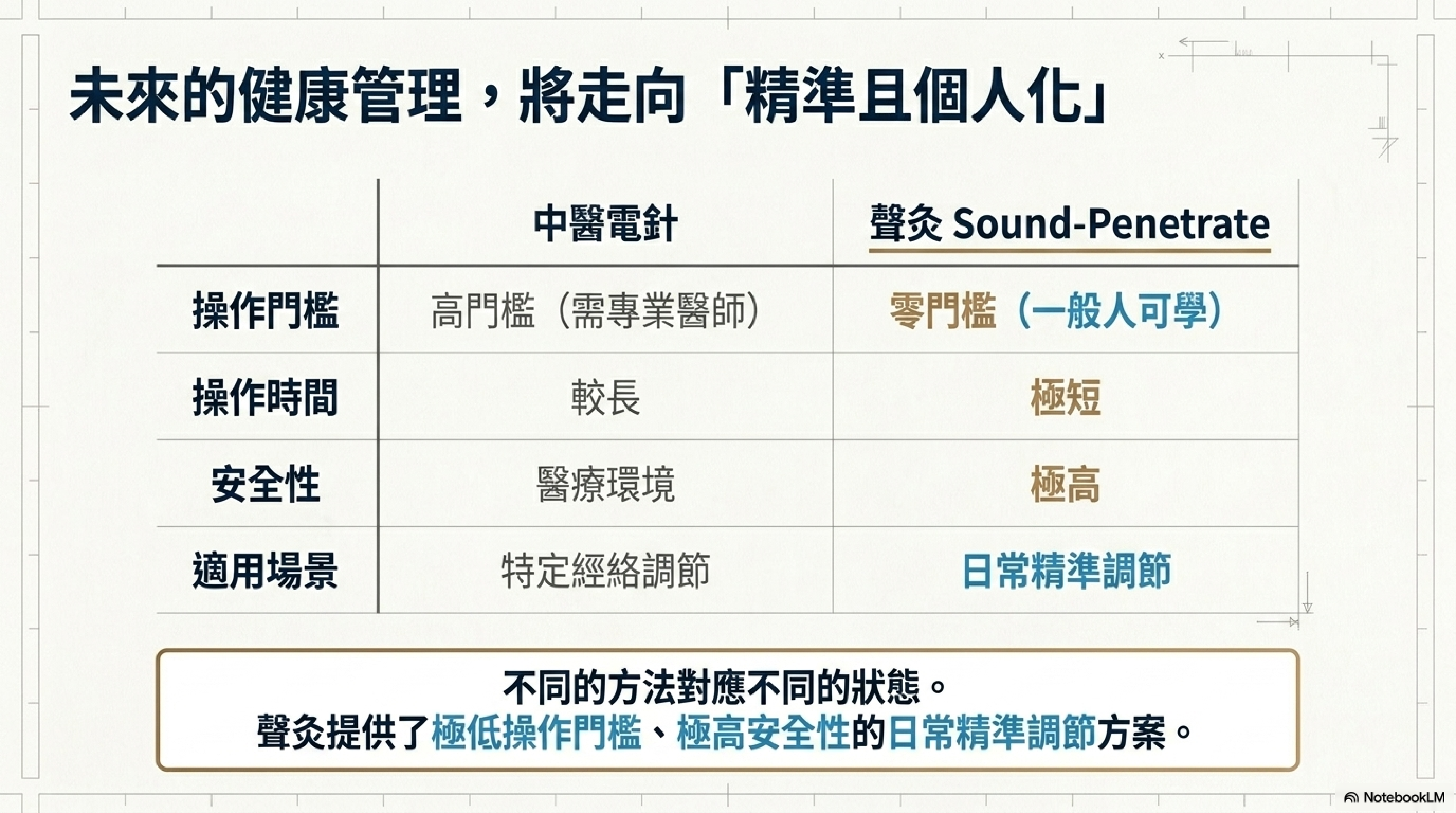 杨裕仲老师创立的声灸体系,以声音×物理×人体结构打造科学疗愈系统,非侵入、无药物、可量化。经AI与脑波实证,帮大众自主掌控健康,兼顾身心调理与职业发展,开启科学疗愈新未来。