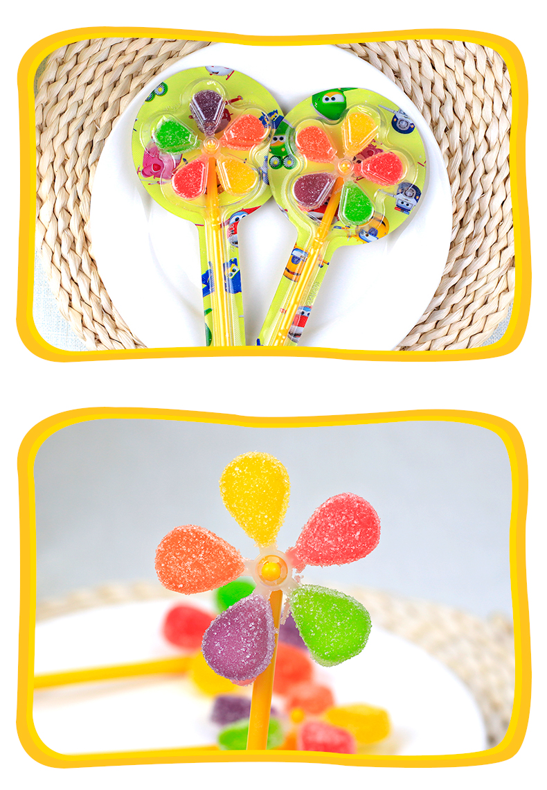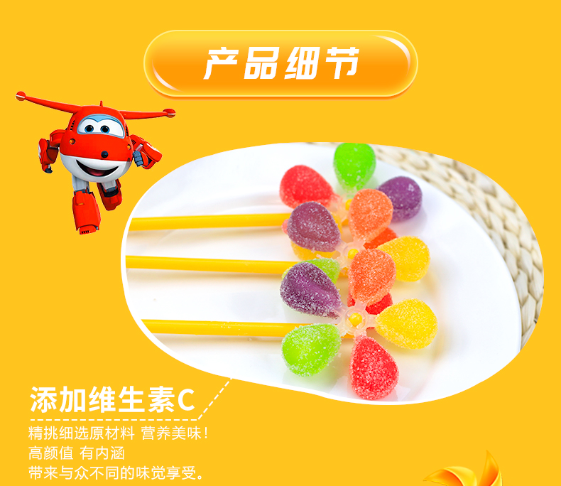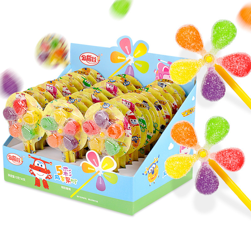 金稻谷棒棒糖五彩风车糖,能吃出不一样的风采,缤纷果味软糖,添加维生素C,精挑细选原材料,营养美味,给大家带来与众不同的味觉享受,超级飞侠包装,小朋友爱不释手好吃又好玩。