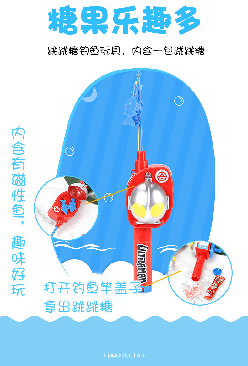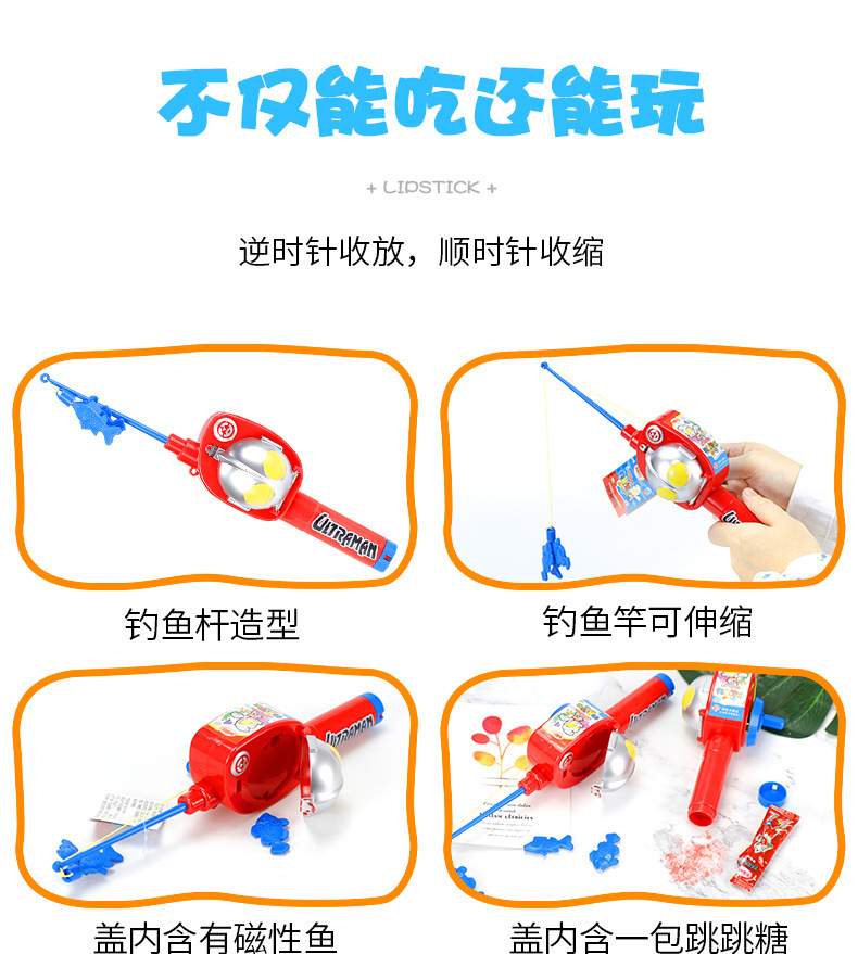 陈瑞武:金稻谷奥特曼钓鱼竿玩具糖果创意益智过家家糖玩网红儿童休闲零食