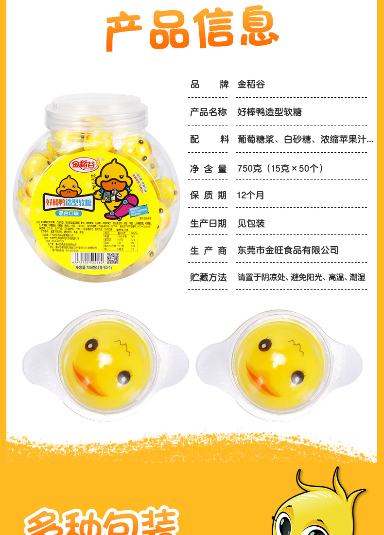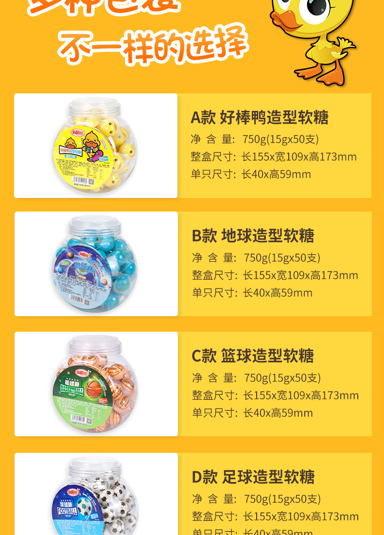 陈瑞武:金稻谷15g眼球糖卡通熊猫糖小黄鸭糖多款造型软糖地球糖