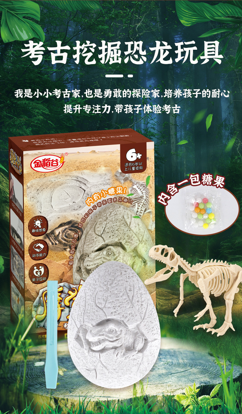 陈瑞武:金稻谷摩登考古DIY恐龙化石玩具糖盲盒亲子互动益智儿童糖