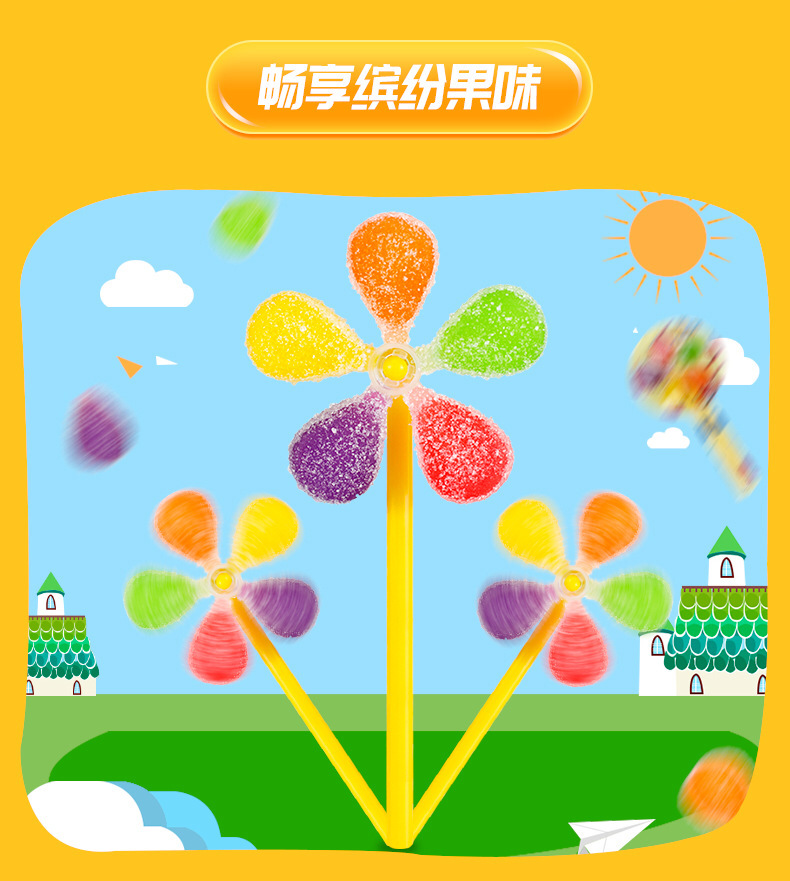 陈瑞武:金稻谷迷你风车软糖棒棒糖水果味12克30支 儿童糖果零食