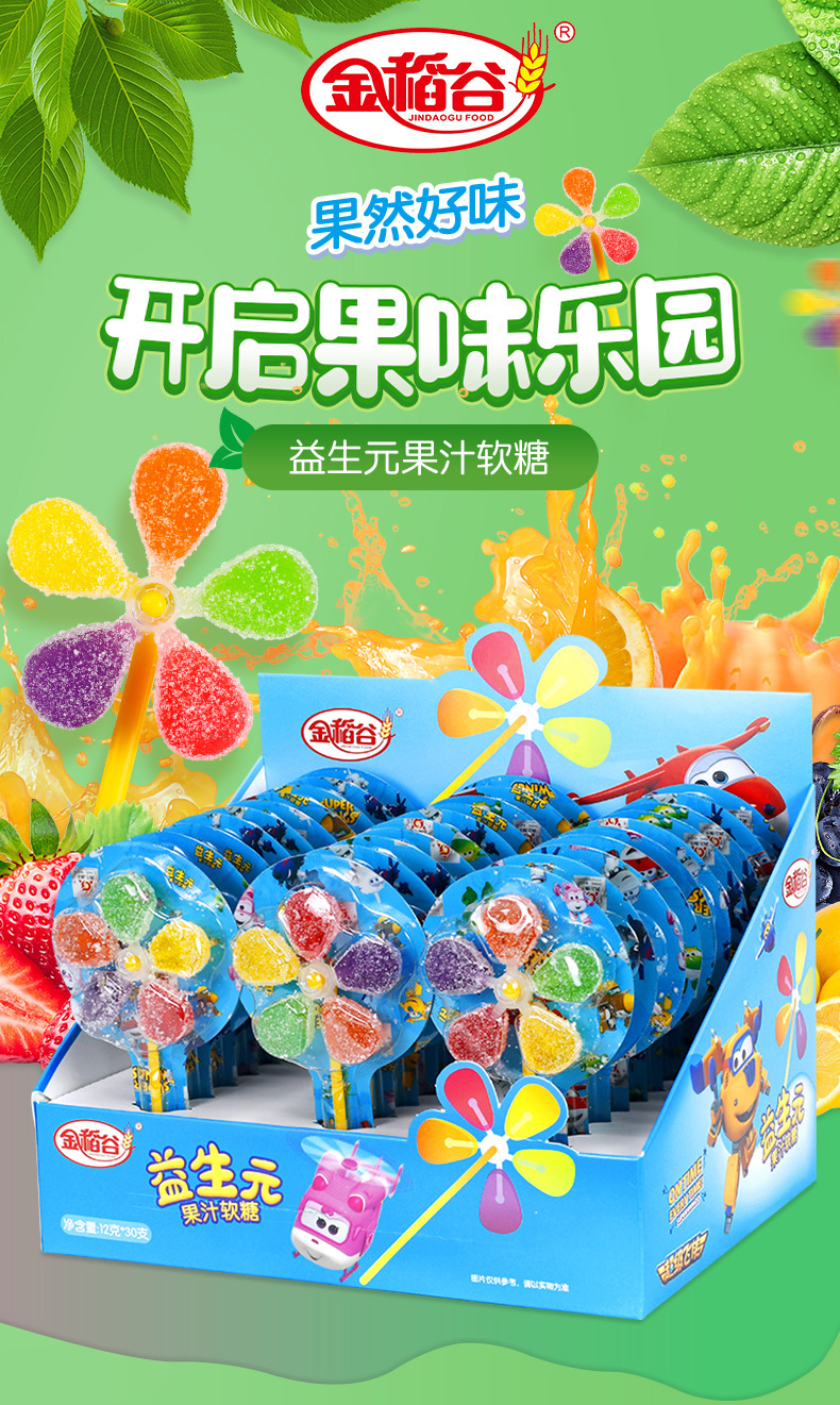 陈瑞武:金稻谷益生元五彩风车糖软糖儿童零食 盒装糖果卡通超飞棒棒糖